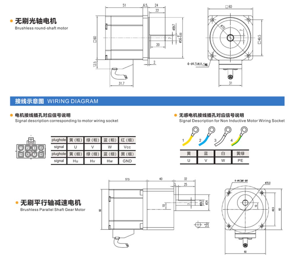 | Motor Model | Power | Rated Voltage | No-load Parameters | Rated Parameters | Grade protection A |