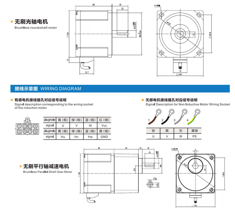 | Motor Model | Power | Rated Voltage | No-load Parameters | Rated Parameters | Grade protection A |