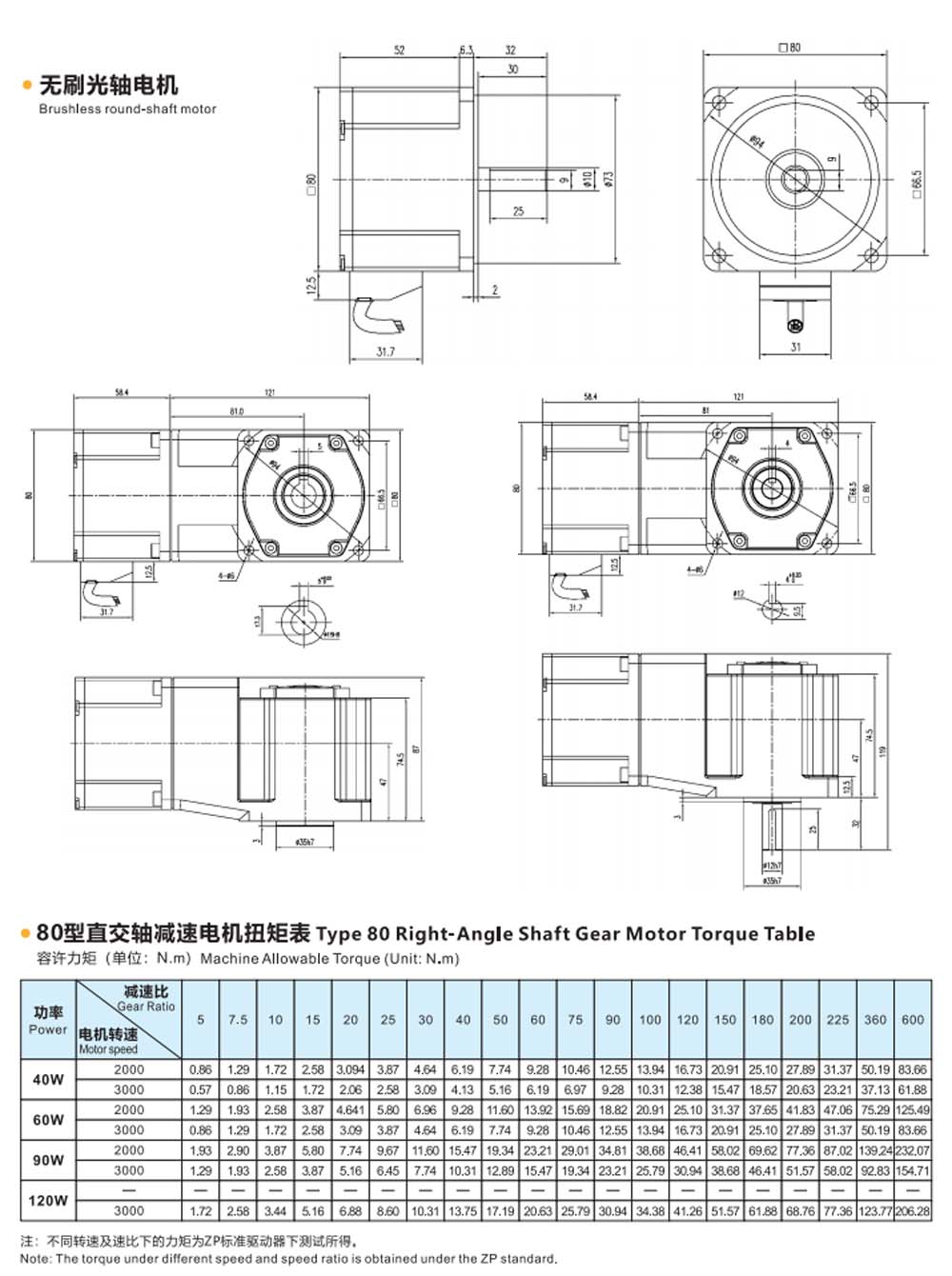 | Type 80 Right-Angle Shaft Gear Motor Torque Iable | ||||||||||||||||||||||